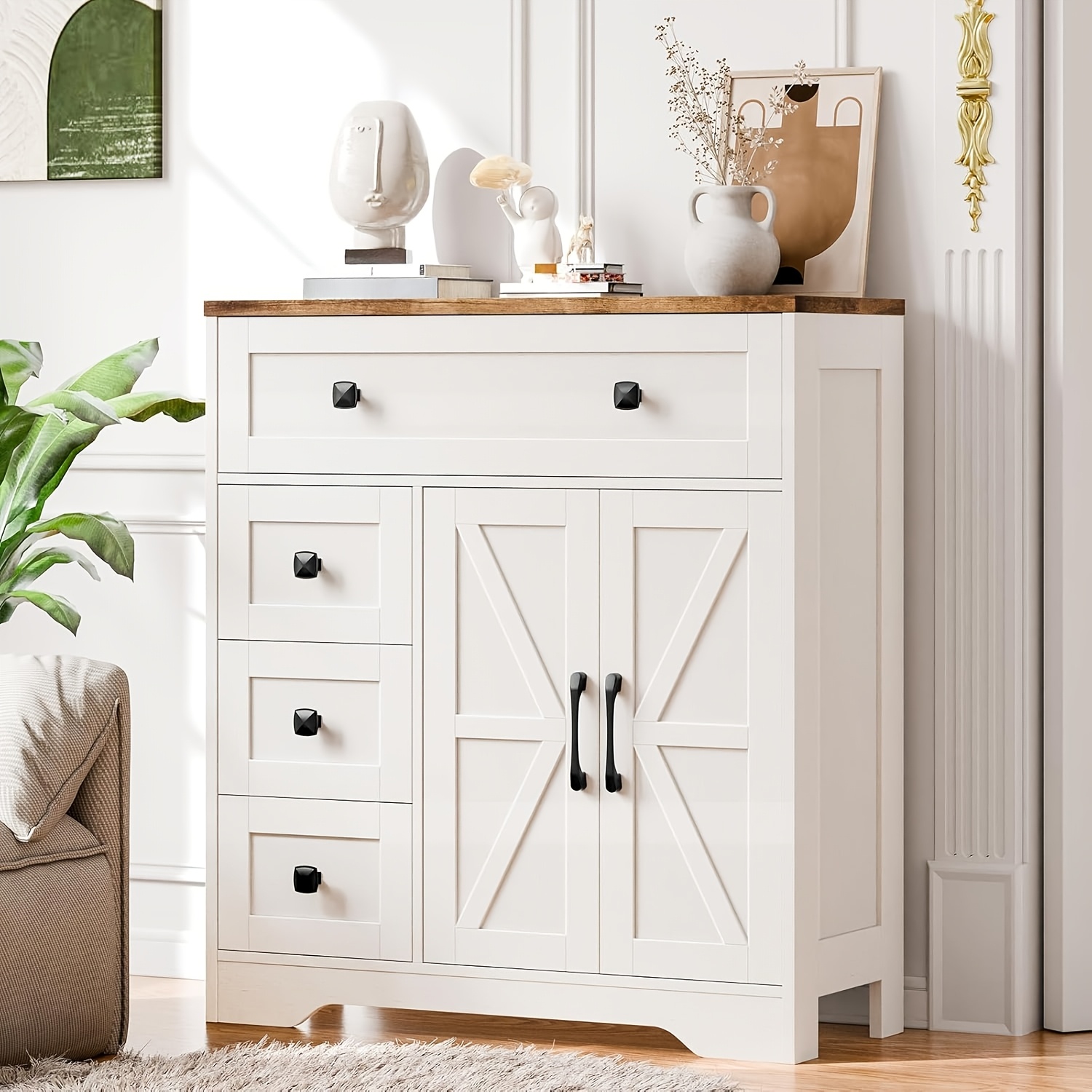 2 Door 4 Drawer Storage Cabinet Freestanding Bathroom Kitchen Organizer with Adjustable Shelves, Multi-Purpose Floor Cupboard for Living Room, Bedroom, Bathroom, Kitchen Pantry - Modern Home Storage Hutch