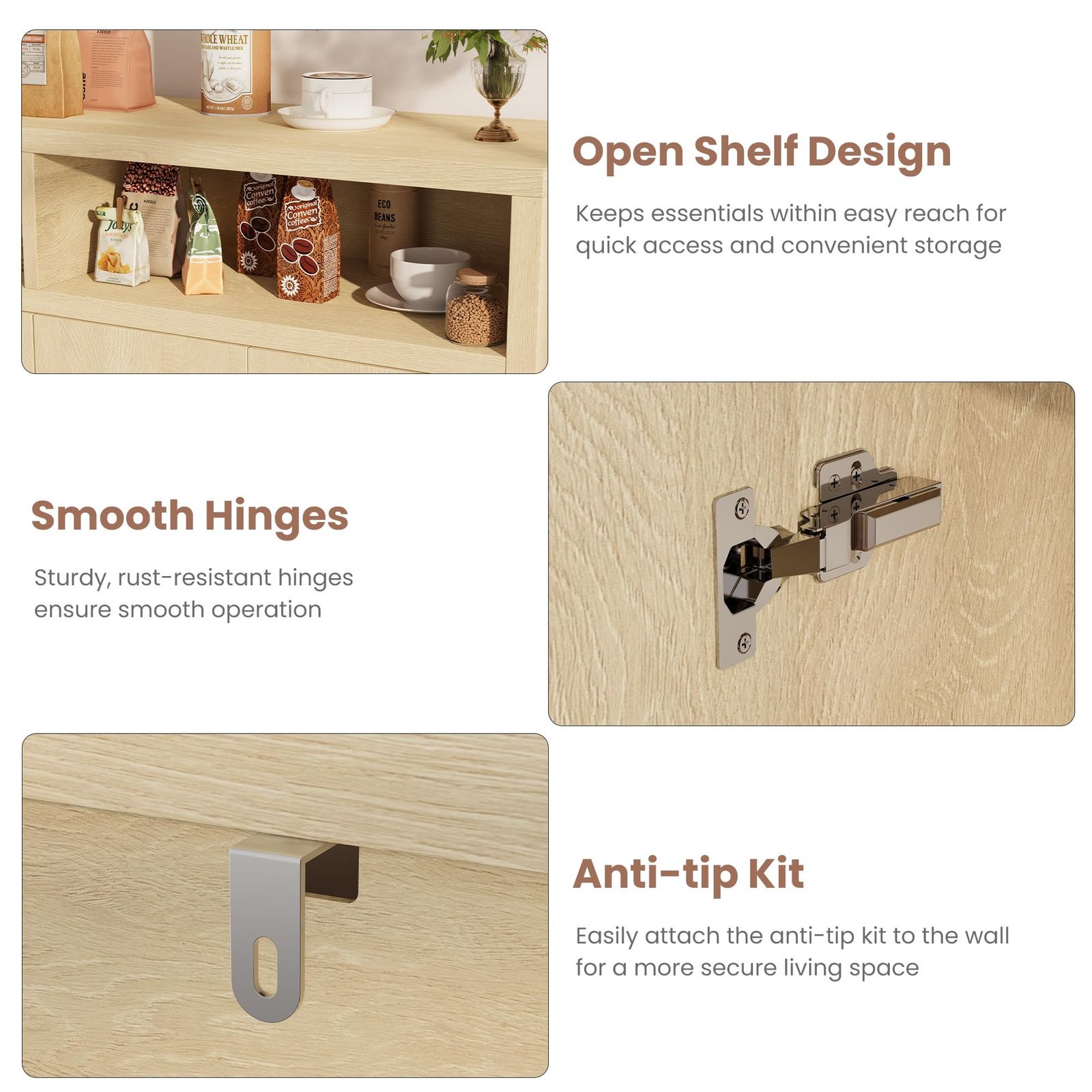 2 Door 4 Drawer Storage Cabinet Freestanding Bathroom Kitchen Organizer with Adjustable Shelves, Multi-Purpose Floor Cupboard for Living Room, Bedroom, Bathroom, Kitchen Pantry - Modern Home Storage Hutch