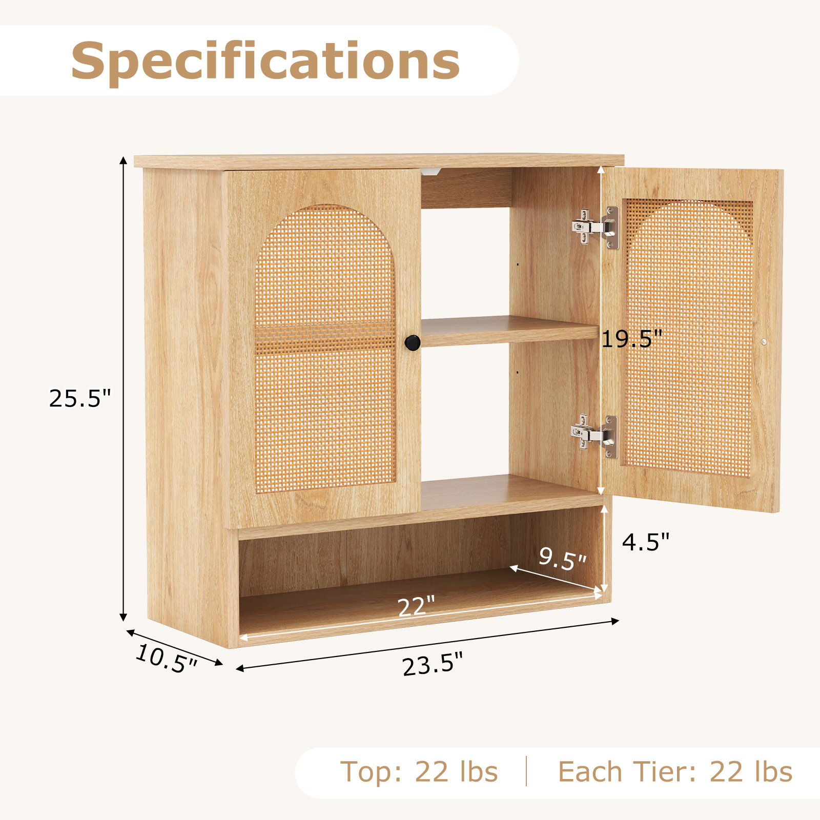 COSTWAY Bathroom Wall-Mounted Cabinet, Faux Rattan Medicine Cabinet with Adjustable Shelves & Open Cube, Open-Back Storage Cabinet Over Toilet, Storage Organizer Unit for Laundry Room, Kitchen