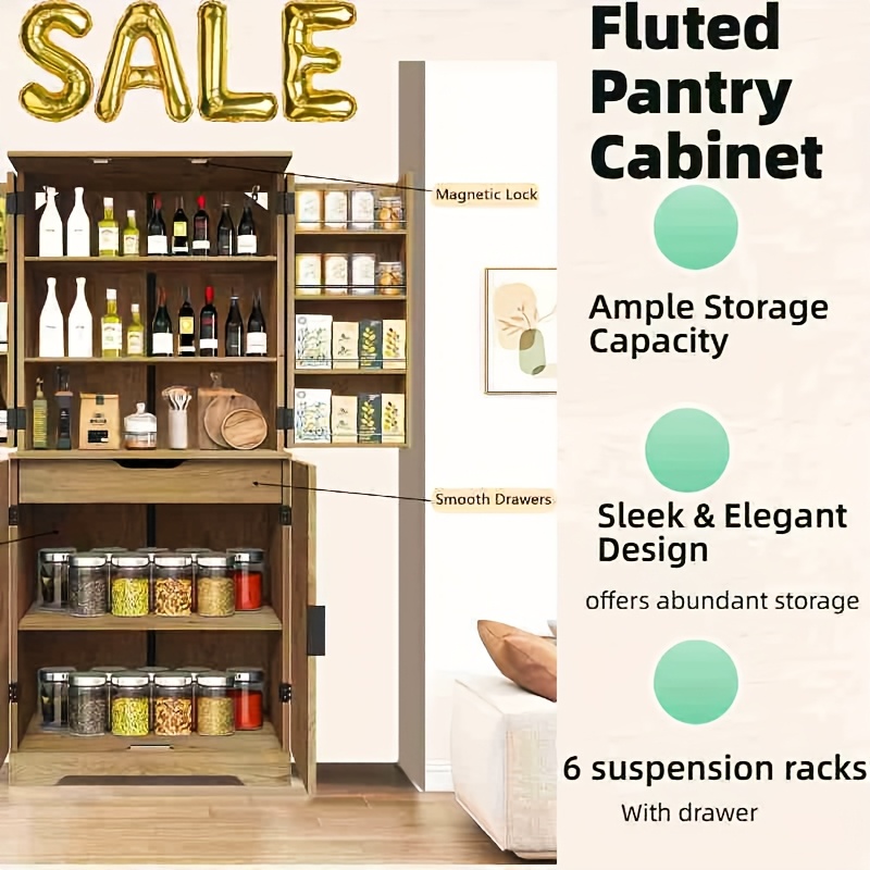 2 Door 4 Drawer Storage Cabinet Freestanding Bathroom Kitchen Organizer with Adjustable Shelves, Multi-Purpose Floor Cupboard for Living Room, Bedroom, Bathroom, Kitchen Pantry - Modern Home Storage Hutch