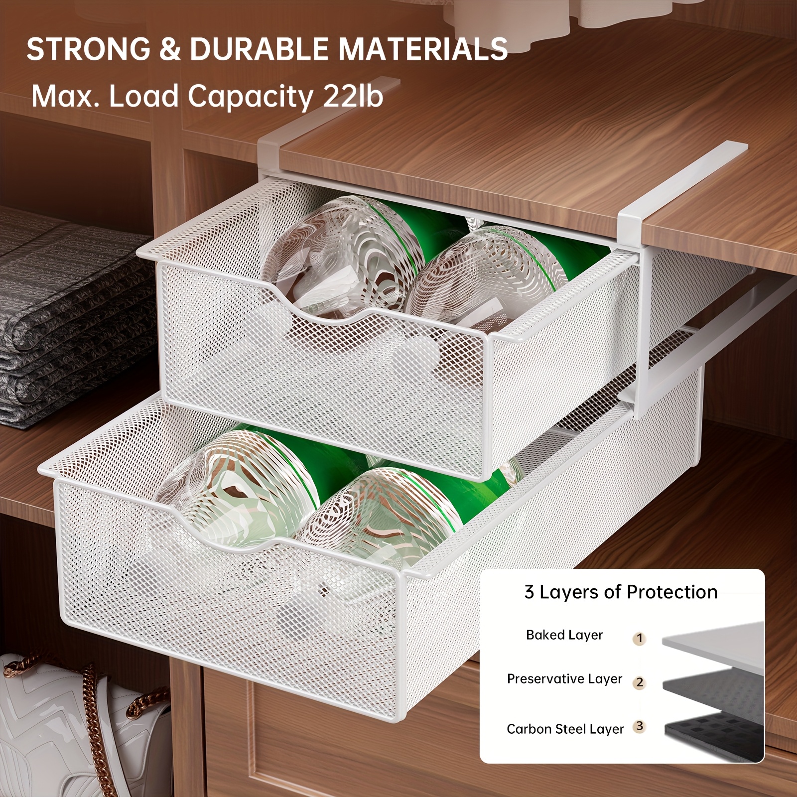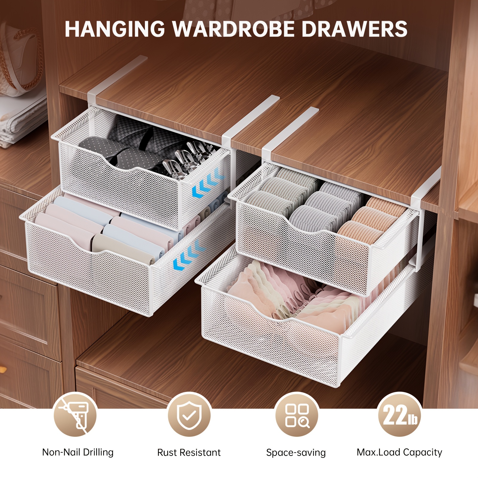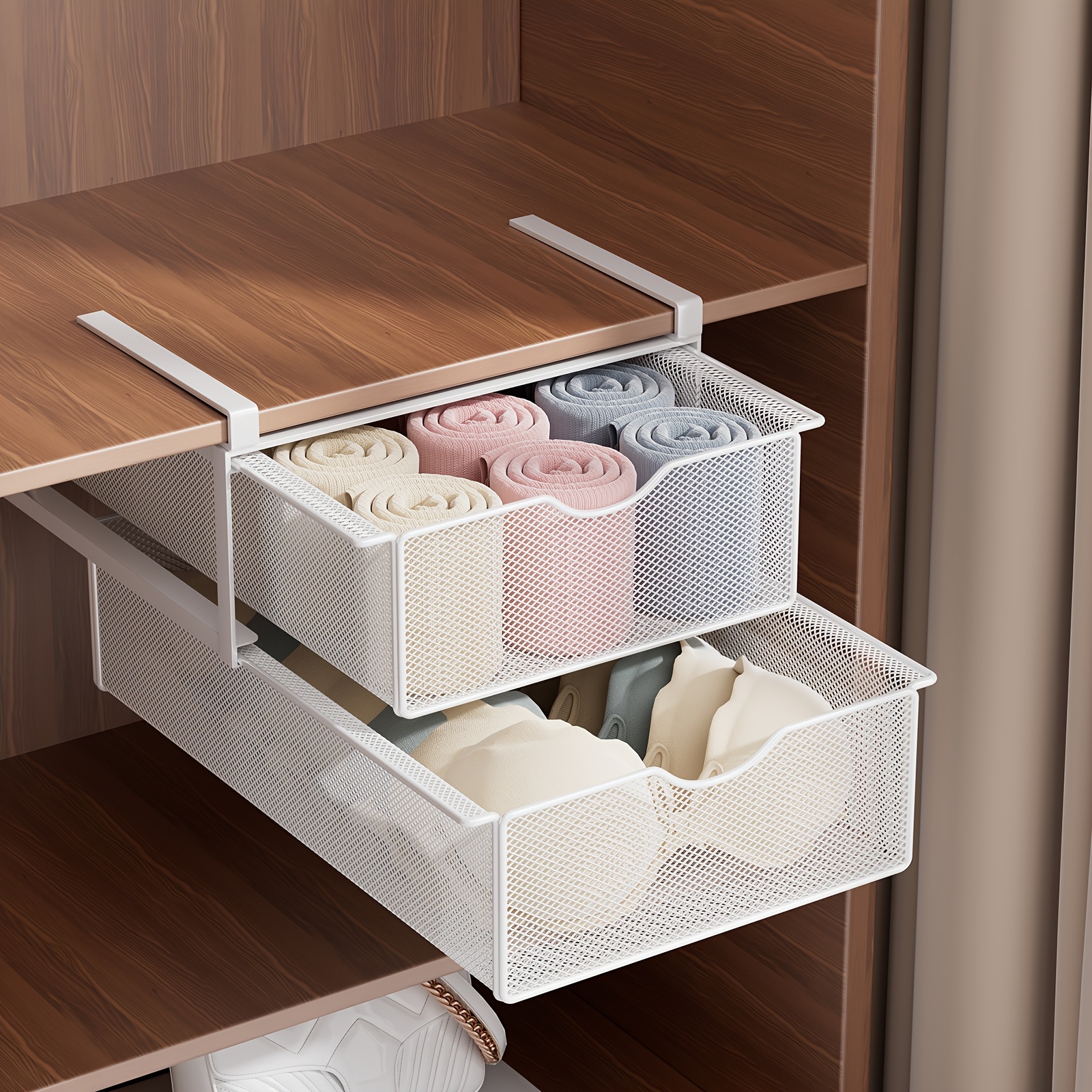 Stackable Pull-Out Drawer Baskets with Two Tiers - Ideal for Organizing Underwear, Socks, And Small Items, Suitable for Closet Shelves And Cabinets, in White